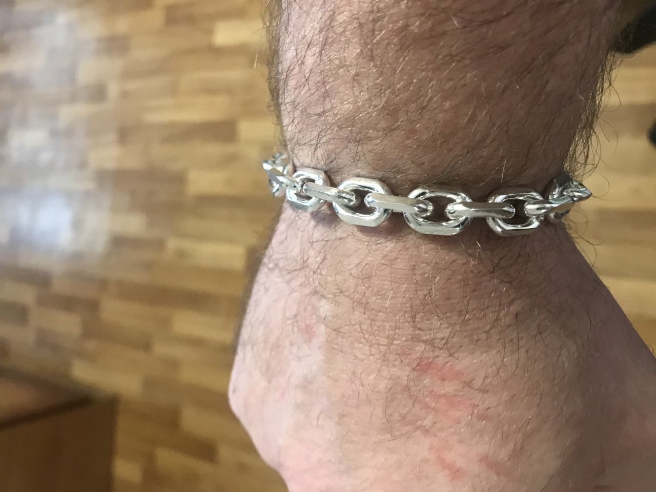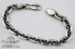 Полновесный браслет. На текущей странице изображено фото мужского серебряного браслета якорного плетения с чернением. Мужским его в первую очередь делают размеры, да и, откровенно говоря, угловатые и несколько грубые формы «Якоря с гранями» в качестве браслета не часто пользуются спросом у девушек, хотя безусловно есть и такие.