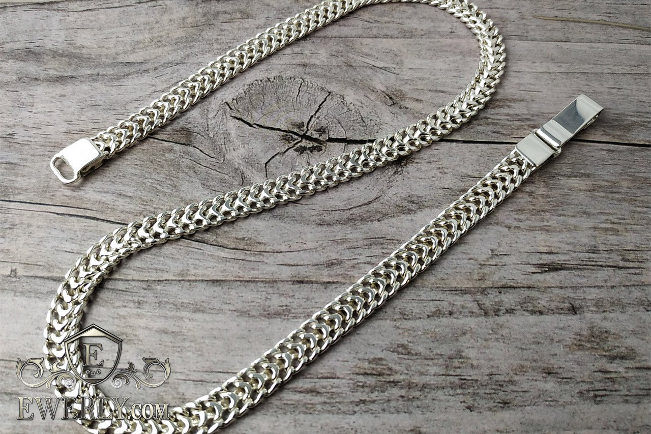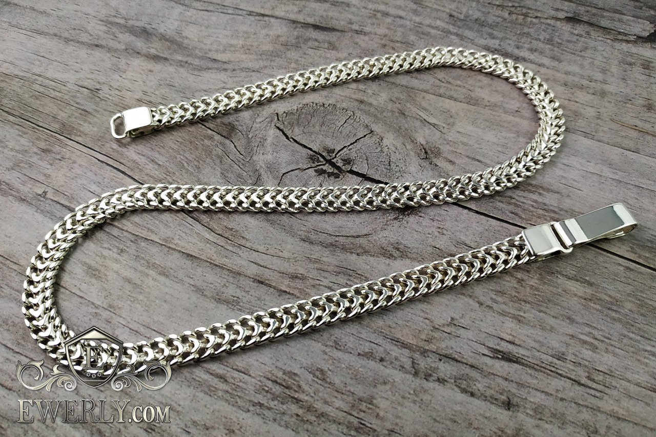 Мужская широкая серебряная цепочка - плетение Трактор (Двойное панцирное)