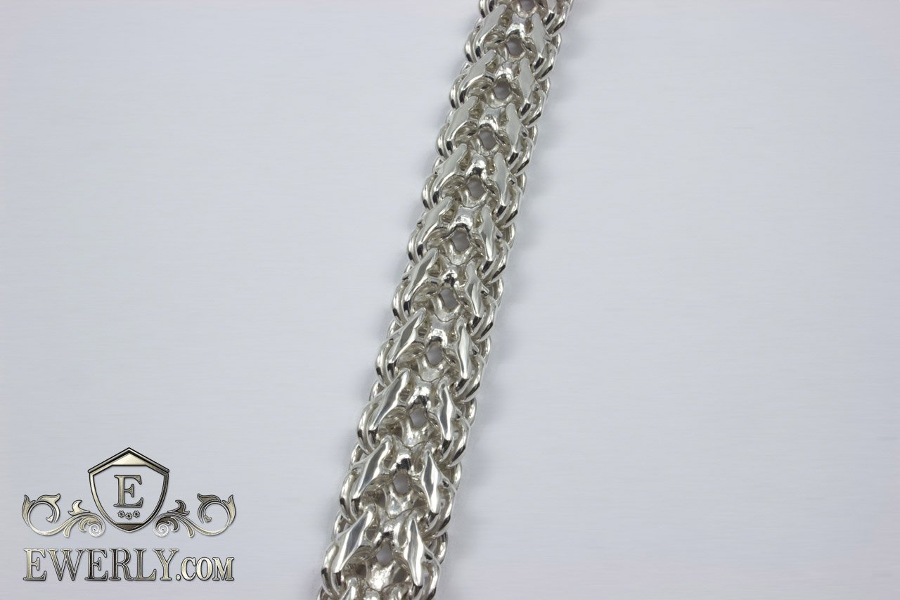 Плетение Двойной ручеёк (Чайка) ручной работы из серебра