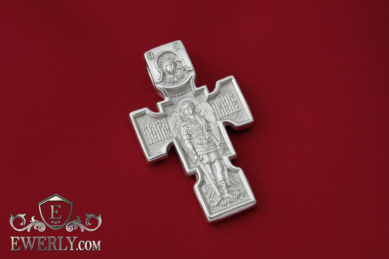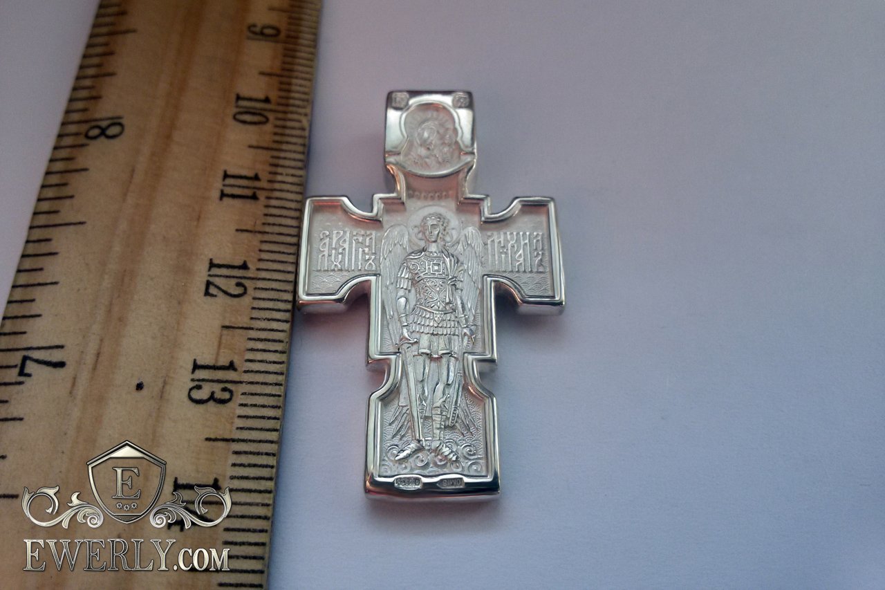 Изображено на фото: Православный наперсный крест с распятием Христовым. Архангел Михаил. Казанская икона Божией Матери.Высота: 6.5 мм
