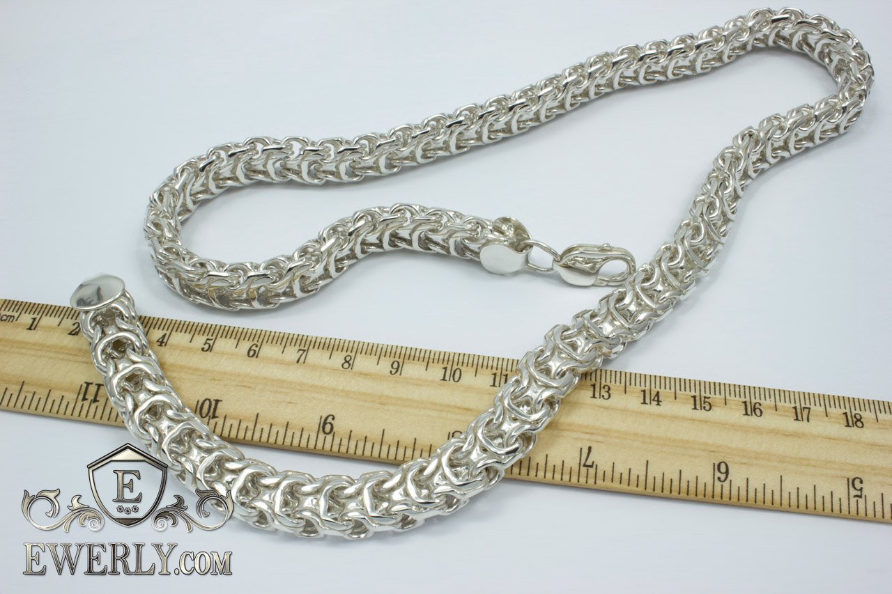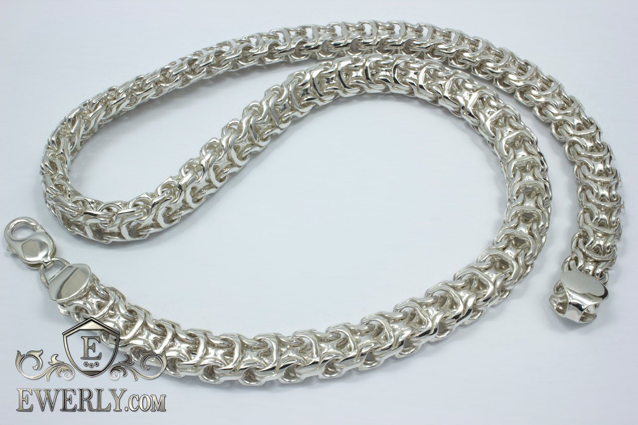 Полновесная серебряная цепочка на шею. Данное плетение достаточно трудоёмкое в исполнении, и большинство ювелиров не обладают достаточным уровнем навыков в изготовлении, чтобы достичь высокого качества украшений, не говоря уже о том, чтобы просто изготовить. На текущий момент качество наших работ из этого плетения существенно превосходит большинство других производителей.