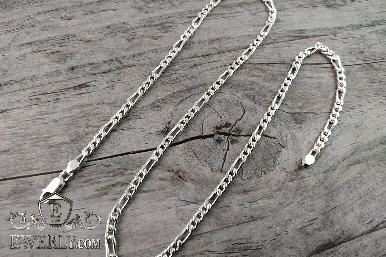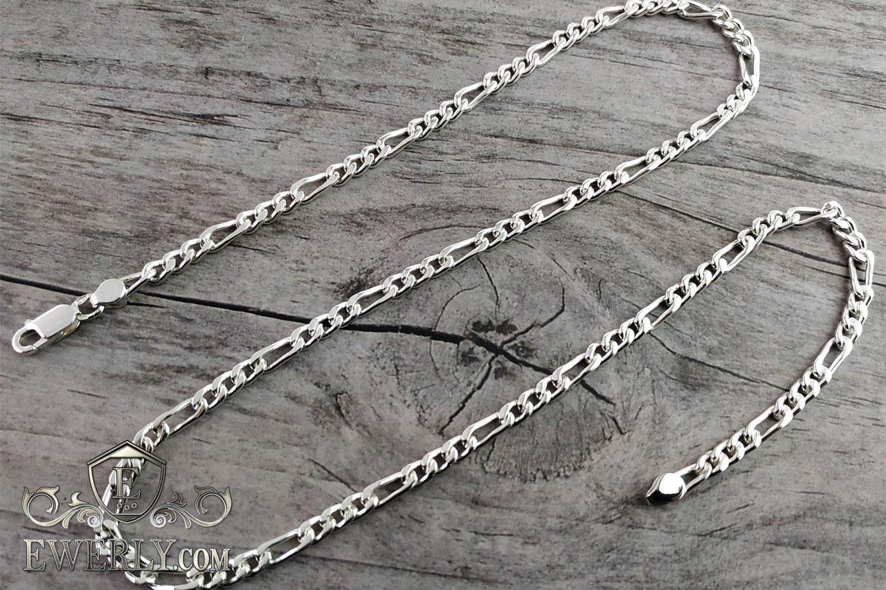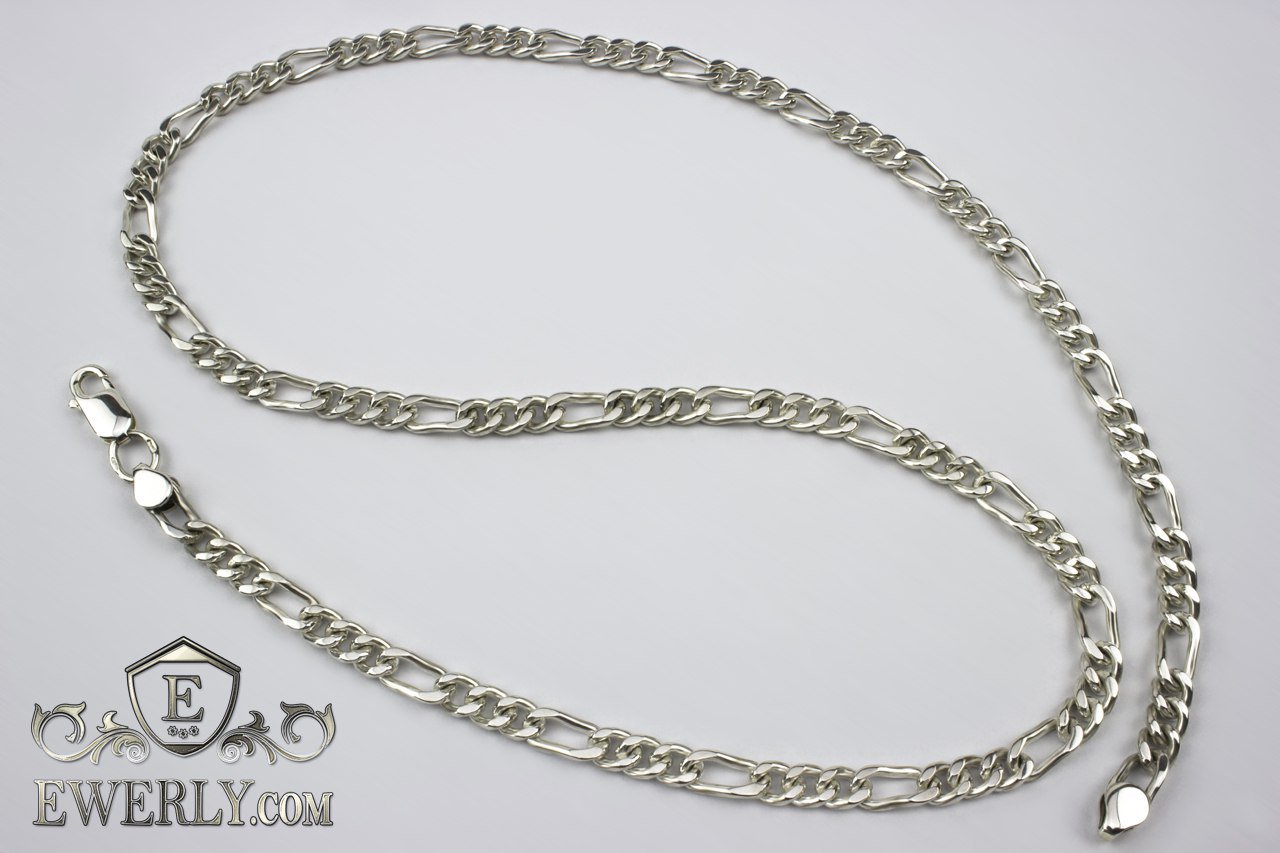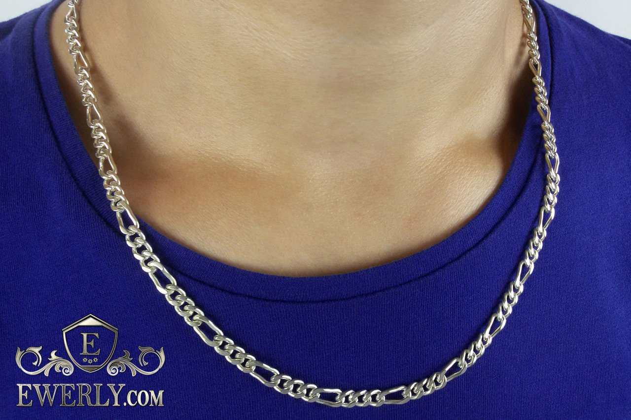 Мужская серебряная цепочка - плетение Фигаро