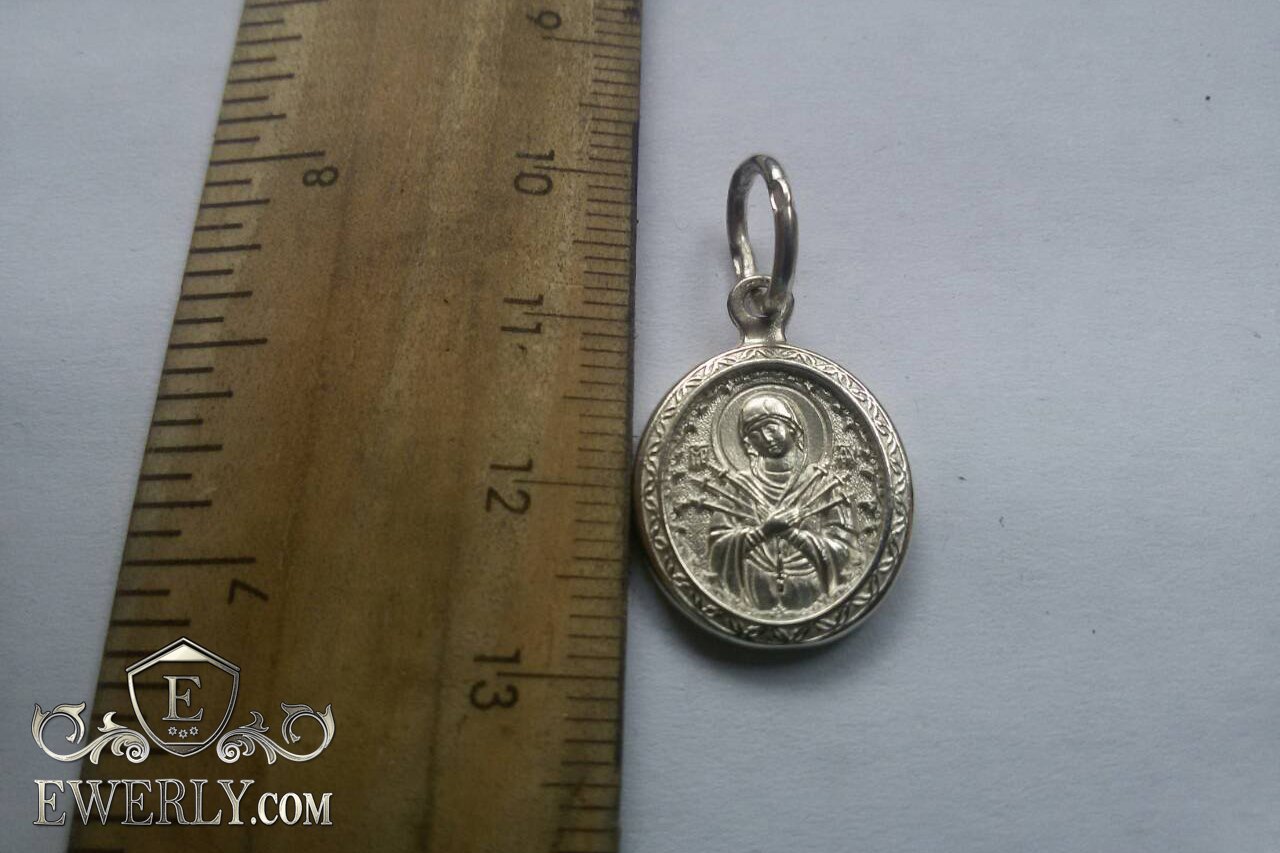 На фото изображено: Серебряная ладанка на шею - икона Божьей Матери Семистрельная.Длина: 1.7 см