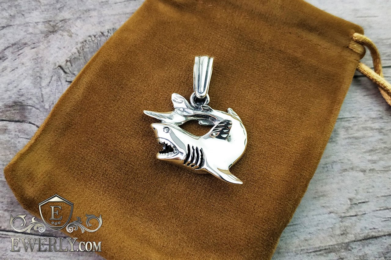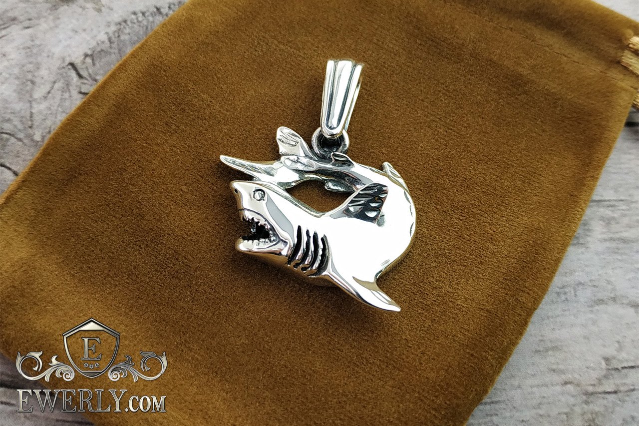 Серебряный кулон Акула - подвеска из серебра 925 пробы