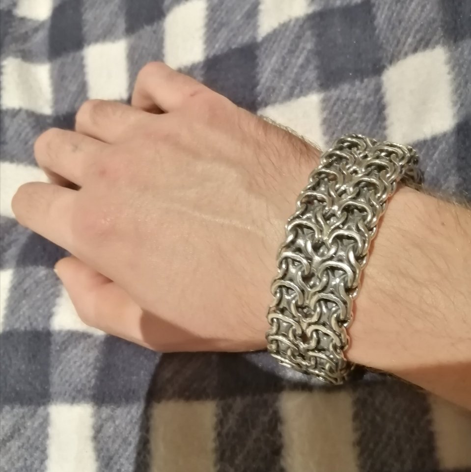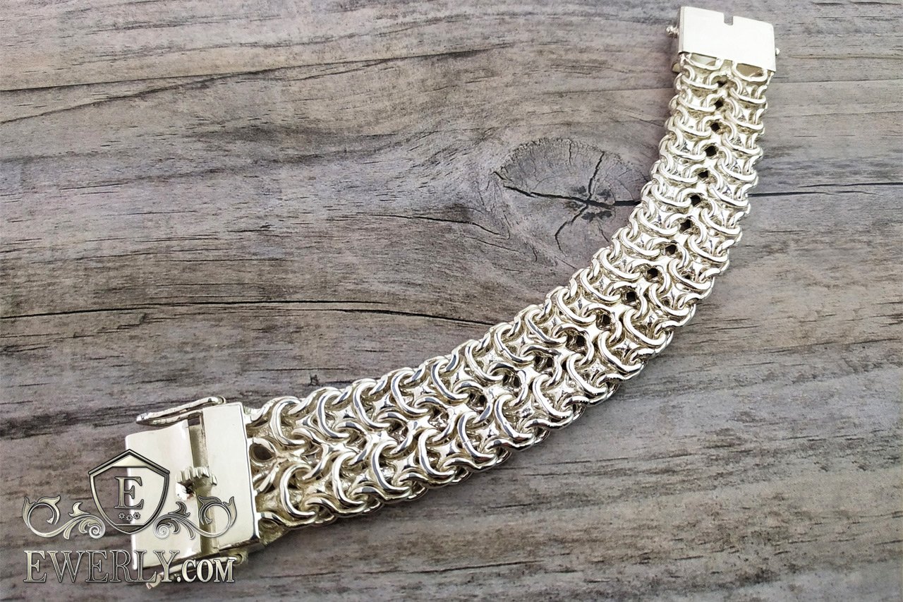 Полновесный серебряный браслет на руку. Данное плетение достаточно трудоёмкое в исполнении, и большинство ювелиров не обладают достаточным уровнем навыков в изготовлении, чтобы достичь высокого качества украшений, не говоря уже о том, чтобы просто изготовить. На текущий момент качество наших работ из этого плетения существенно превосходит большинство других производителей.
