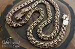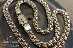 Полновесная цепочка. Массивная серебряная цепь Бисмарк с позолотой — это классика мужского ювелирного стиля, сочетающая в себе мощь, элегантность и статус. Цепочка выполнена из высококачественного серебра 925 пробы, покрытого золотом 585 пробы, весом 100 грамм и длиной 65 см — оптимальный выбор для мужчин, предпочитающих солидные и заметные украшения. Также при Вашем желании мы можем изготовить цепочку по Вашим требованиям.