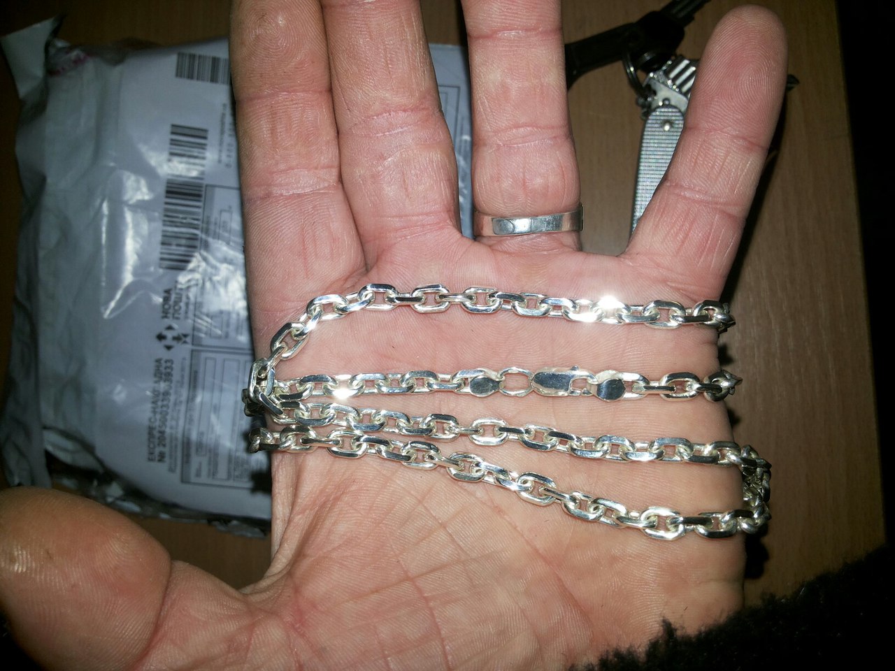 Огромное спасибо, изделие выполнено идеально! Особенно отдельное спасибо консультанту который информировал во всех интересующих вопросах. Заказывала Мужскую якорную цепь (якорь) с гранями. Масса: 173.25 г Ширина: 10.5 мм Длина: 55 см Немного переживала что будет огромная, но напрасно, она прекрасна. Спасибо)))
