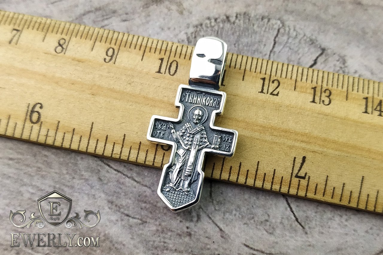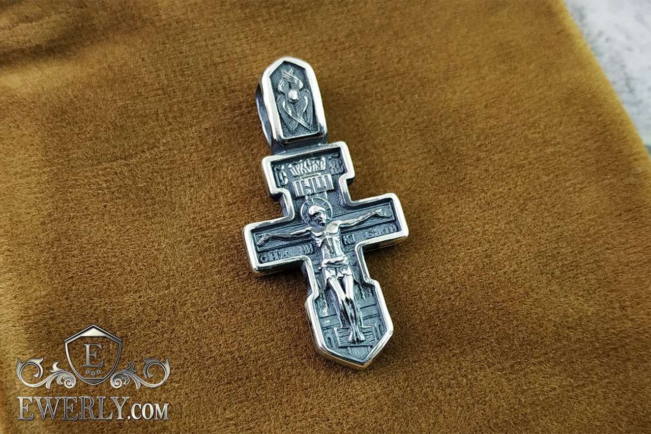 Крестик с распятием из серебра с чернением