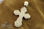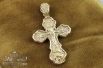 На лицевой стороне креста изображено Распятие Иисуса Христа. На обороте — короткая молитва, обращенная к Господу, которая традиционно помещается на нательных крестах: «Спаси и сохрани».