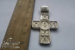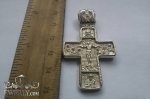 Изображено на кресте: Распятие Христово с предстоящими. Апостол Пётр. Икона Божией Матери Знамение с пророками. Православный крест.Длина: 3.9 см