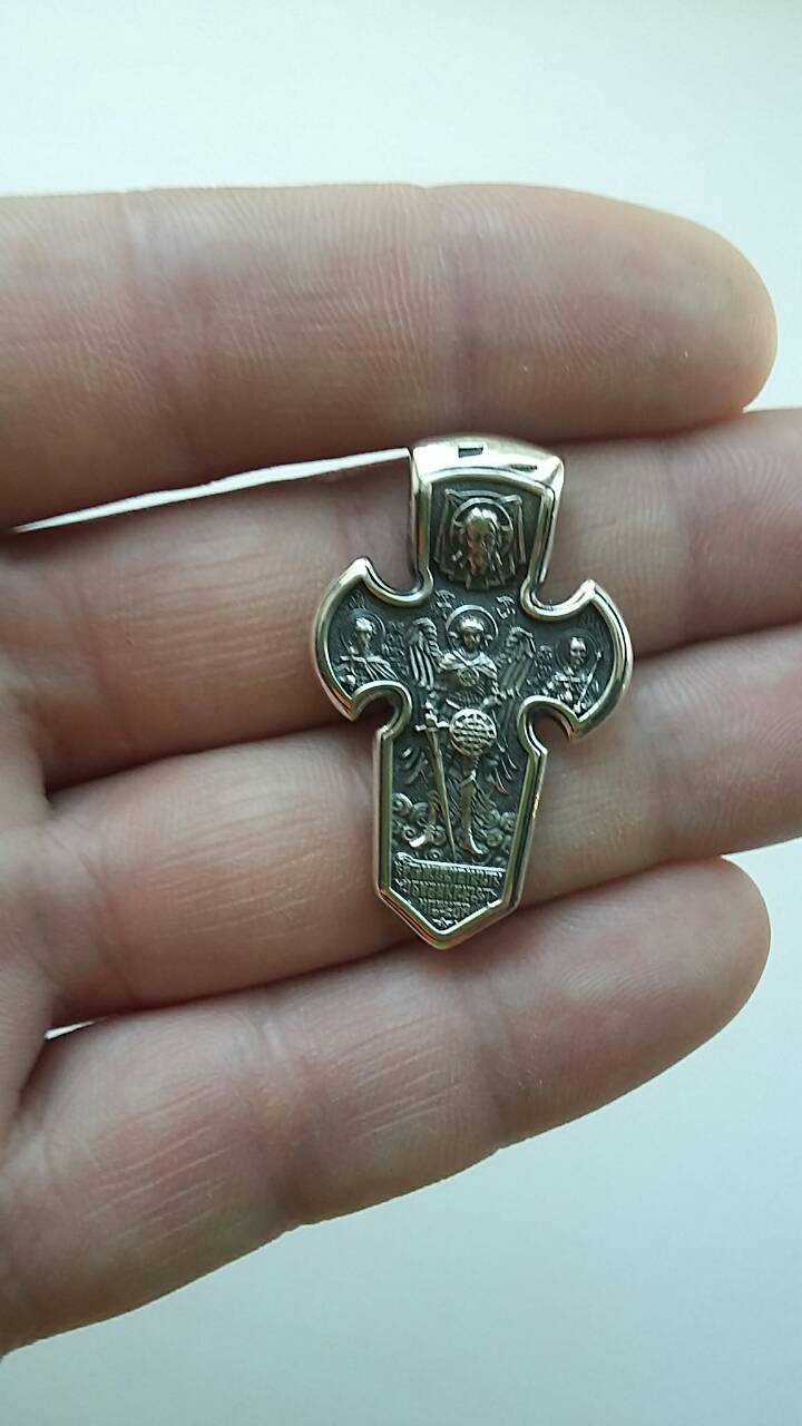 Изображено на фото креста: Распятие Христово. Архангел Михаил.Высота: 5.5 мм