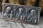 На иконке изображены: Божья матерь, Иисус Христос, Святой Николай Чудотворец.
