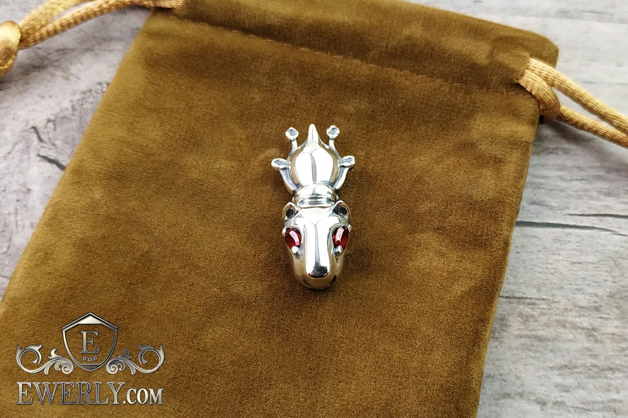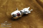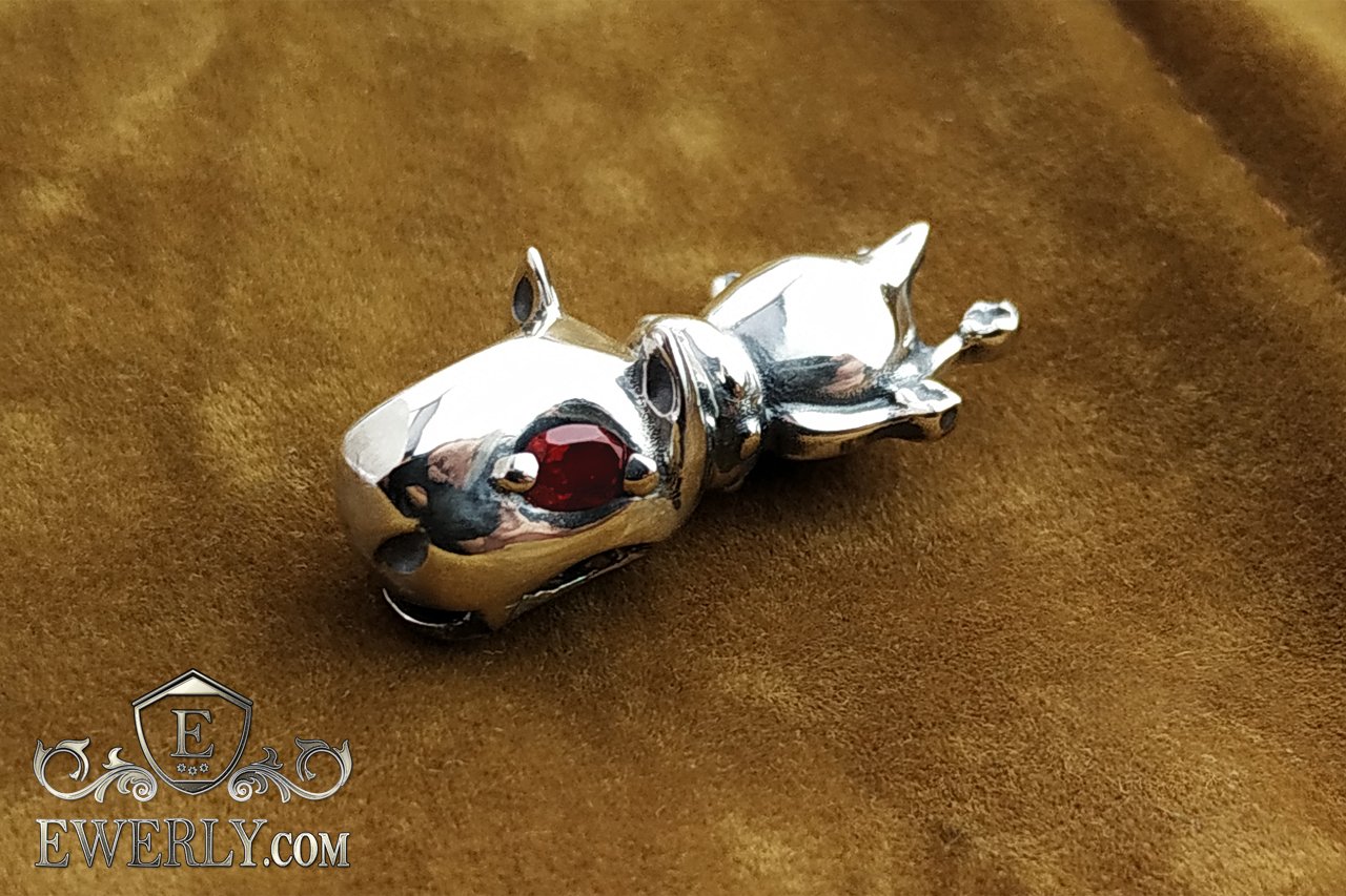 Как женский, так и мужской серебряный кулон - собачка с глазами-вставками (красными камнями). Подвеска выполнена из серебра 925 пробы с натуральными гранатами в форме овала.