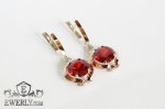 Серебряные серёжки с гранатовыми камнями для девушки (золотые вставки)