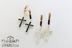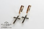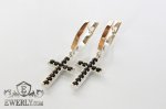 Женские серебряные серёжки - кресты из серебра с золотом (чёрные камни)
