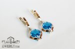 Серебряные серёжки 925 пробы для девушки с золотыми вставками 375 пробы и голубыми камнями - фианитами.