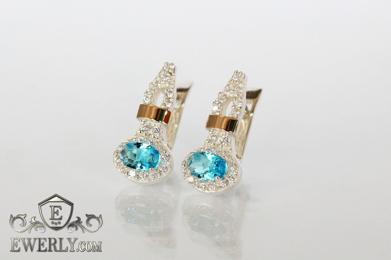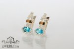 Серьги - капли из серебра с золотыми пластинами (светло-голубые камни)