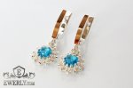 Серёжки из серебра 925 пробы для девушки с золотыми вставками 375 пробы и голубыми камнями - фианитами.
