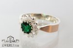 Женское серебряное кольцо (серебро 925 пробы) с золотом 375 пробы и зелёным фианитом.