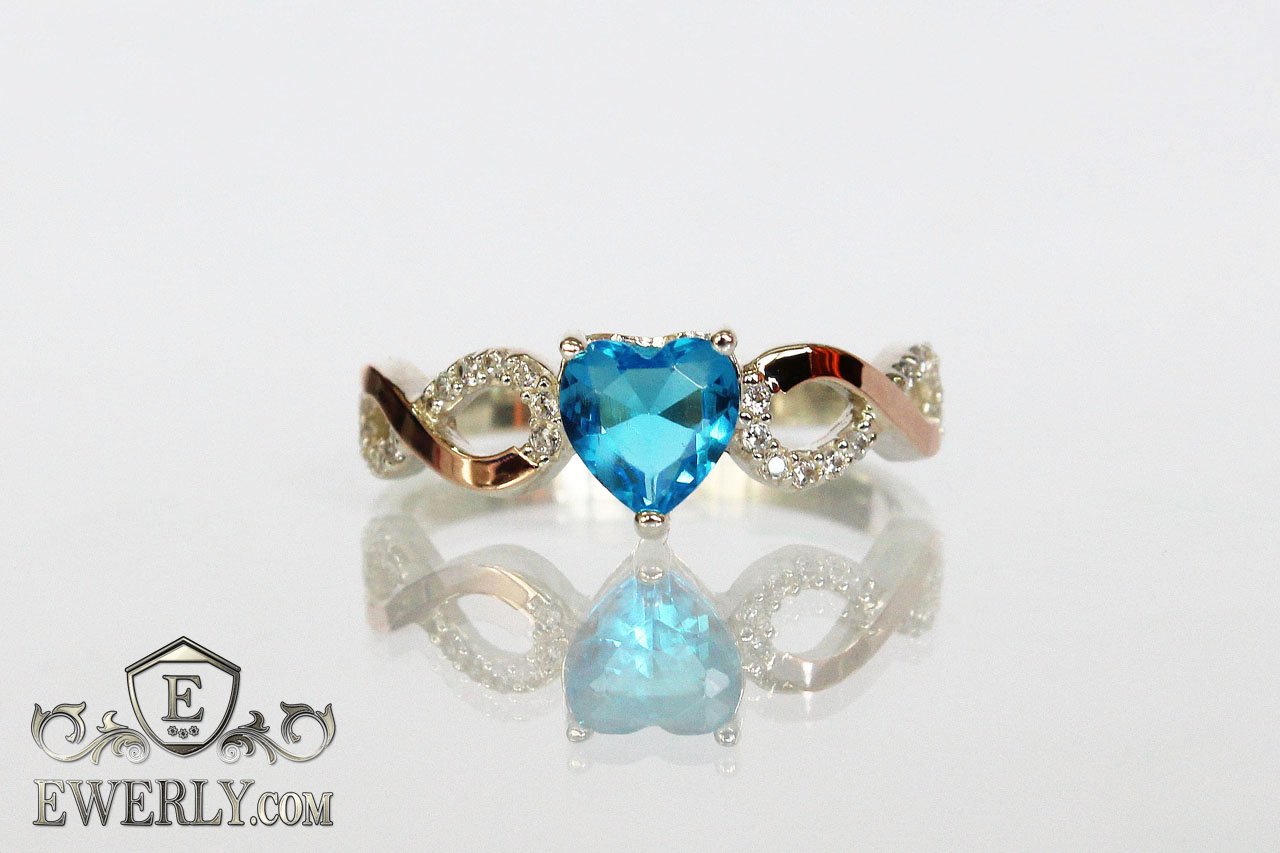 Голубое сердце из фианита в серебряном кольце — свежесть, стиль, утончённость