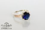 Женское cеребряное кольцо 925 пробы с золотыми вставками 375 пробы с камнем (фианит, цвет - синий).