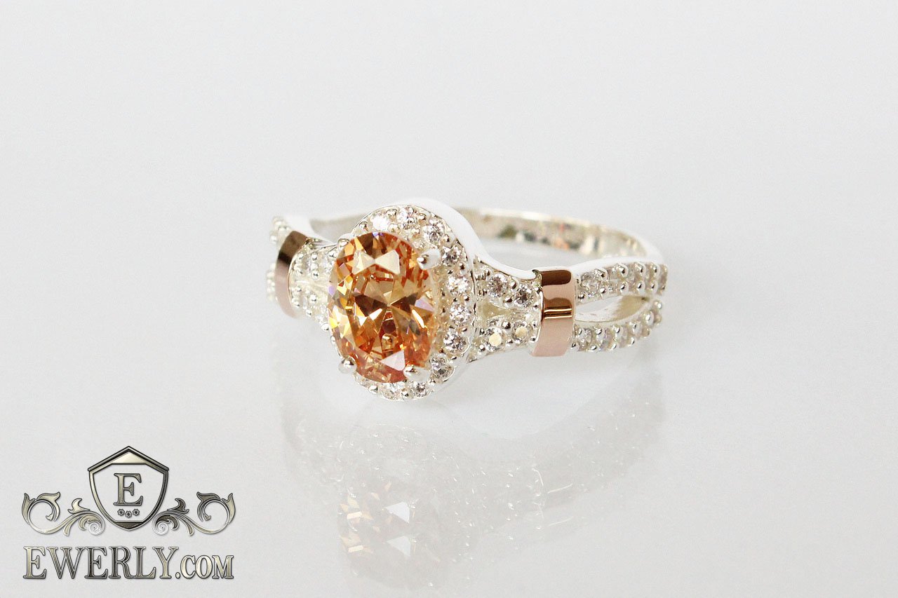 Серебряное кольцо для девушки с фианитом (цвет-шампань)
