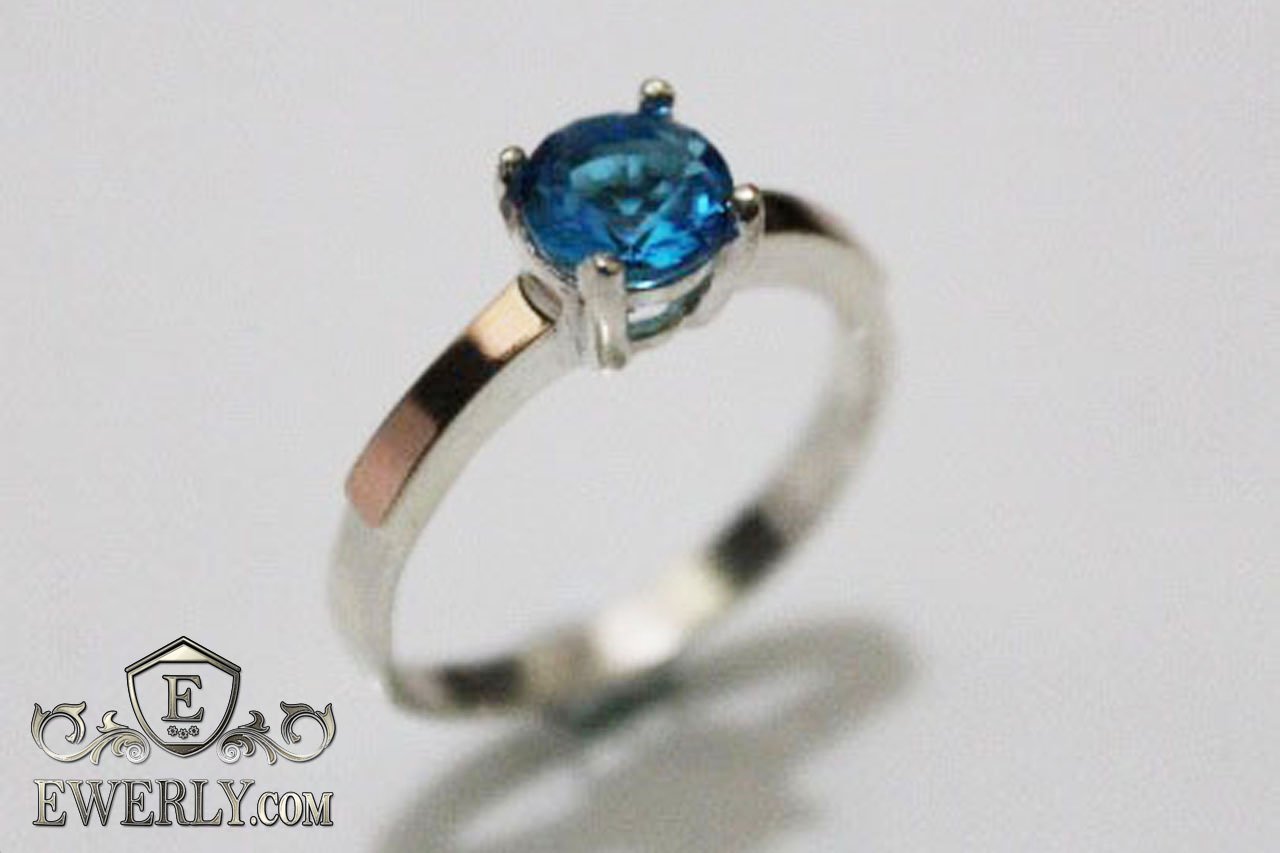 Женское кольцо из серебра с фианитом (синий цвет)