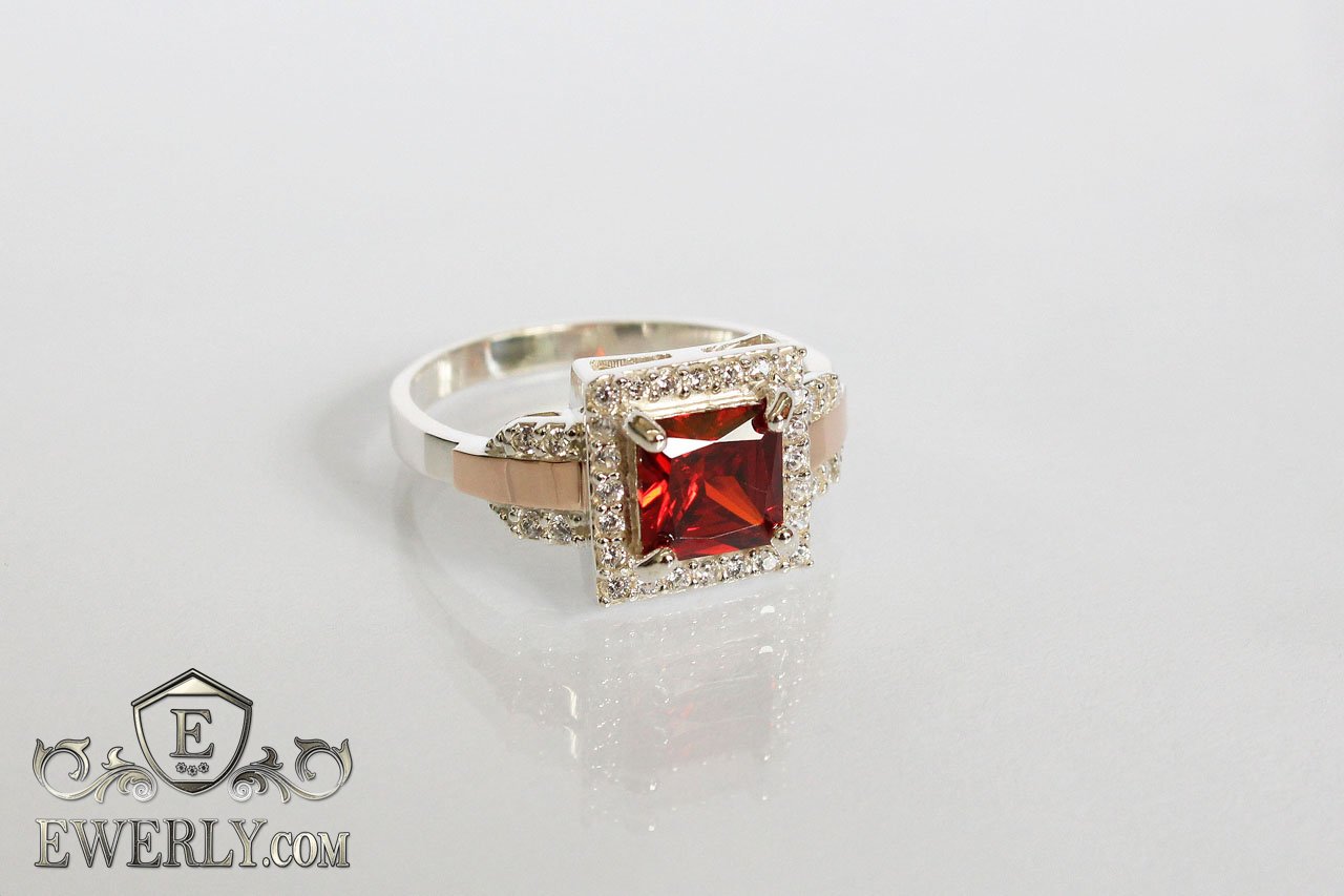 Кольцо из серебра с красным (гранатовым) фианитом квадратной формы