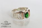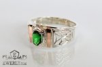 Мужской серебряный перстень с золотом и зелёным фианитом