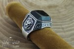 Мужской серебряный перстень "Лев" с чёрным камнем Оникс под заказ