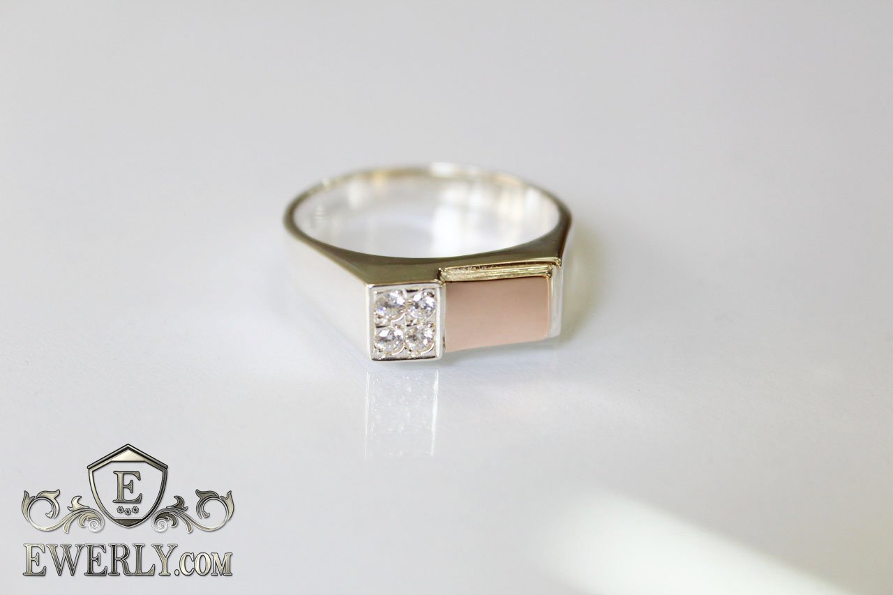 Мужской серебряный перстень с золотыми вставками