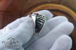 На фото изображён мужской перстень из серебра с Ангелом Хранителем. Данное кольцо изготовлено из серебра 925 пробы с тёмно-зелёным камнем "Яшма". На ободке кольца надпись "нет человека без ангела и нет праведника без поводыря". Размеры перстня можно выбрать по вашему желанию, чтобы он идеально подходил к вашей руке.
