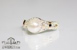 Женское cеребряное кольцо 925 пробы с золотыми вставками 375 пробы с камнем (белый фианит - жемчуг).