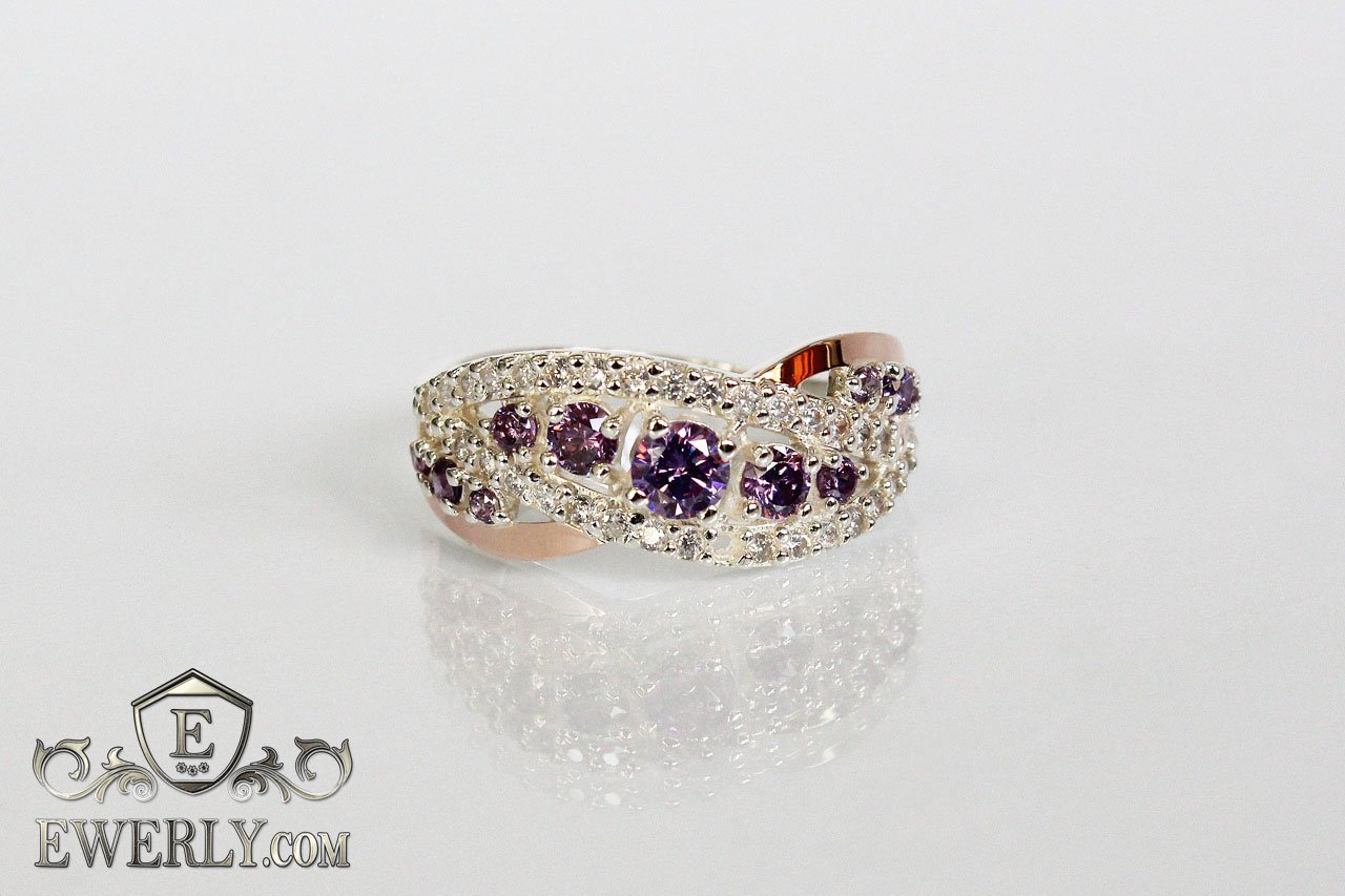 Серебряное кольцо с золотом - бесконечность с сиреневыми фианитами