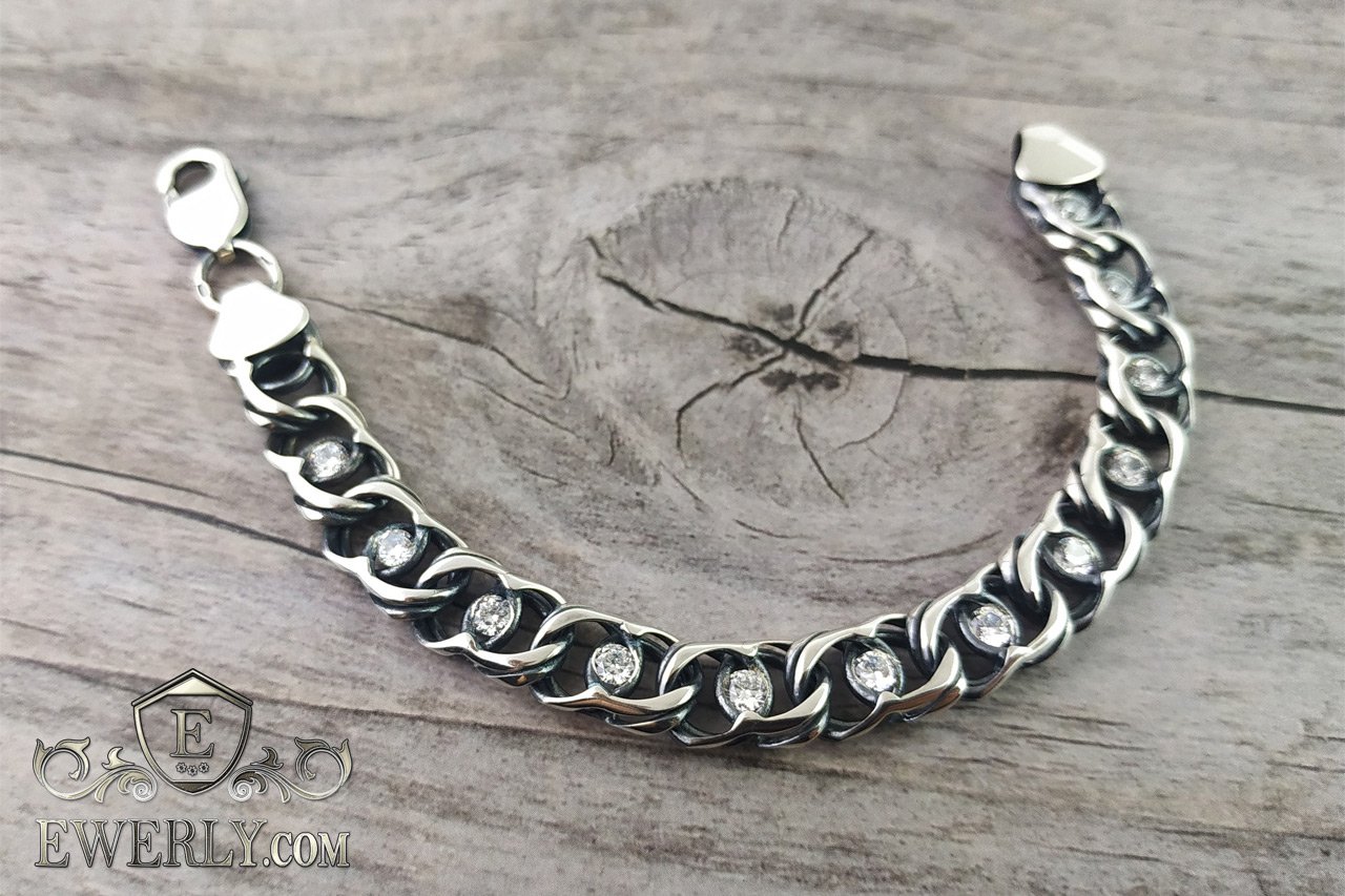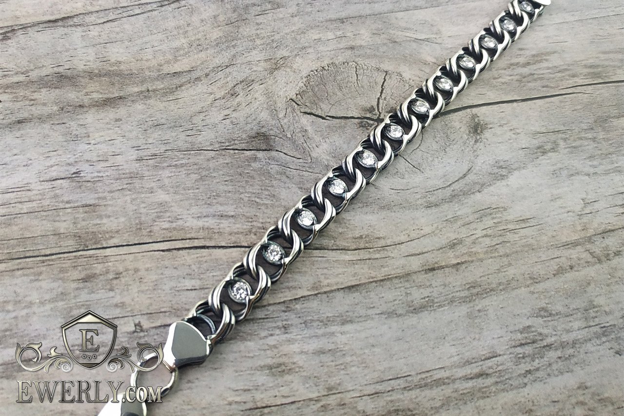 Арабский бисмарк с фианитами - браслет из серебра с камнями