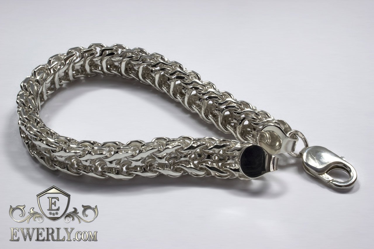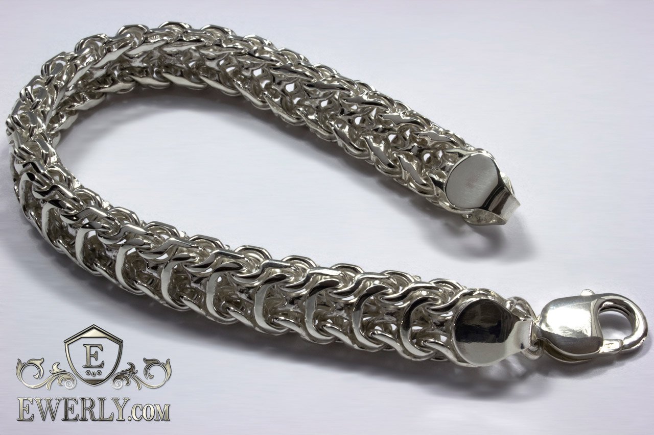 Полновесный серебряный браслет на руку. Уникальное плетение, разработанное нашими мастерами, и на текущий момент Вы нигде больше такого не найдёте. Купить или заказать изделия из этого плетения можно только у нас.