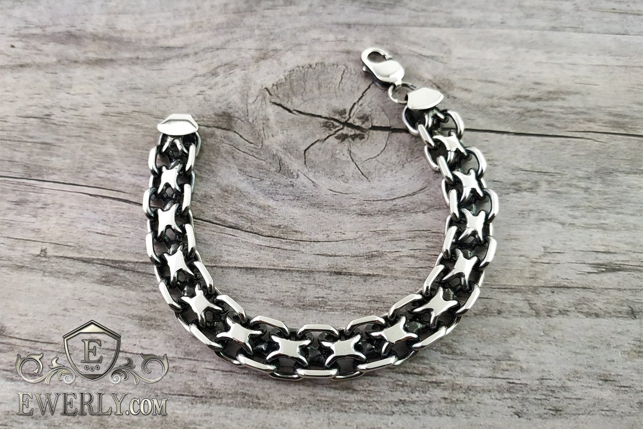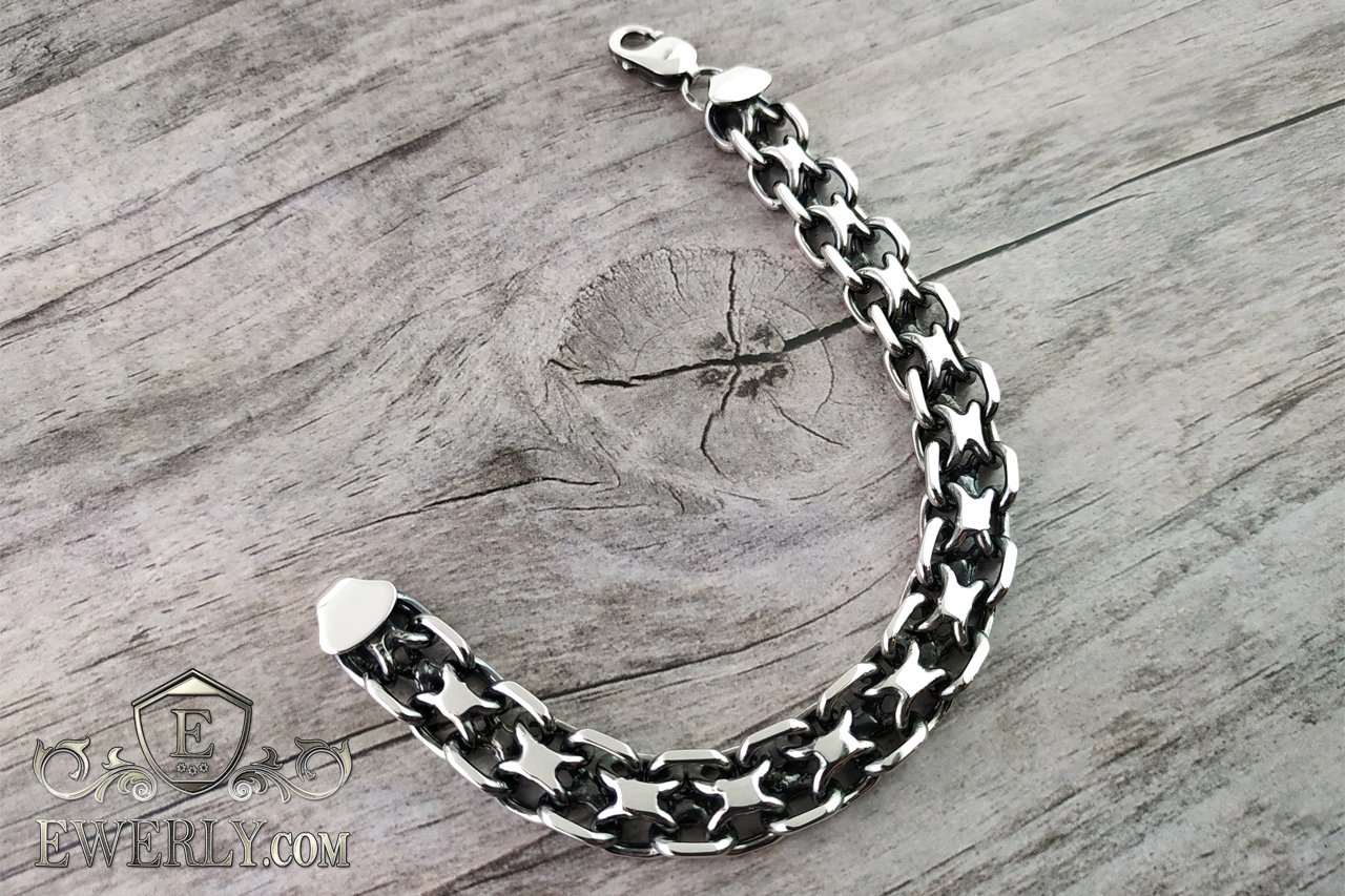 Мужской браслет из серебра Фараон, двойное якорное плетение