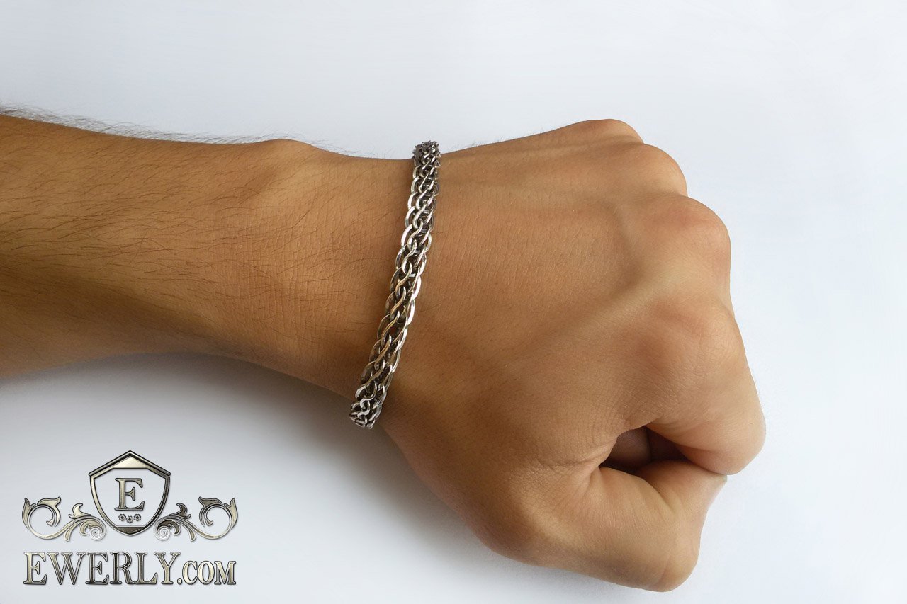 Полновесный серебряный браслет на руку. Уникальное плетение, разработанное нашими мастерами, и на текущий момент Вы нигде больше такого не найдёте. Купить или заказать изделия из этого плетения можно только у нас.