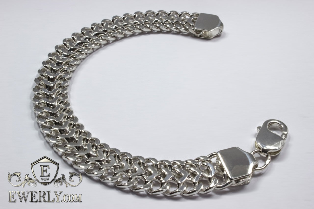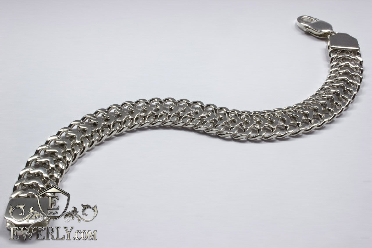 Серебряный браслет Трактор (двойной панцирный) из серебра 925 пробы
