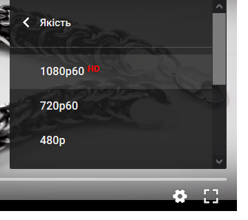 У повноекранному режимі можна змінювати якість відео на те, що Вам більше підходить: