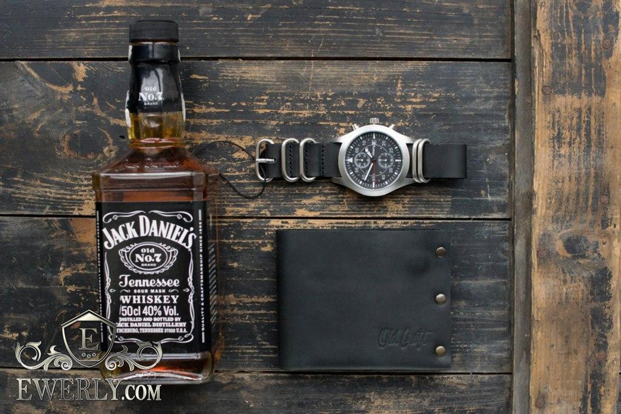 Чоловічий шкіряний гаманець ручної роботи чорний 11014DQ