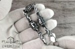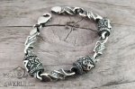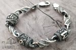 Повновісний браслет. Плетіння даного браслета є авторською роботою і являє собою чергування ланок з різним дизайном і формою. За Вашим бажанням можемо виготовити ланки за Вашими параметрами. На даному срібному браслеті три великих ланки із зображенням 3-х рун: Вуньо, Йара, Еваз. Розміри браслета можна коригувати, змінювати застібку та покриття.