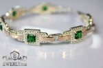 Жіночий браслет зі срібла з золотом і зеленими каменями