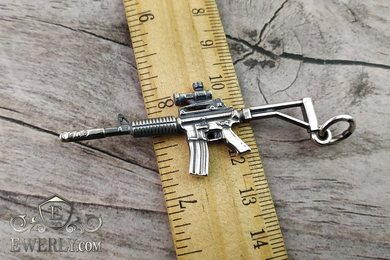 На фото показана срібна підвіска - кулон "Автомат М16" з чорнінням.