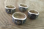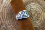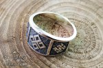 Авторська чоловіча срібна печатка без каменів зі слов'янськими символами. На даному кільці зображені символи "Одолень-трава" і "Реза Даждьбога".
